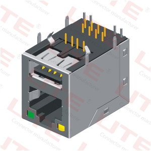 Rj45 with 2 Port USB2.0,Shielded,With LED, R/A Type 141.2012.11500