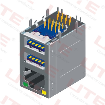 Rj45 with 2 Port USB3.0,Shielded,With LED, R/A Type 146.2032.21500