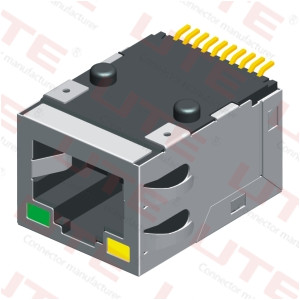 RJ45模塊的核心是模塊化插孔。鍍金的導線或插座孔可維持與模塊化的插座彈片間穩定而可靠的電器連接。由于彈片與插孔間的摩擦作用,電接觸隨著插頭的插入而得到進一步加強。插孔主體設計采用整體鎖定機制,這樣當模塊化插頭插入時,插頭和插孔的界面外可產生最大的拉拔強度。RJ45模塊上的接線模塊通過“U”形接線槽來連接雙絞線,鎖定彈片可以在面板等信息出口裝置上固定RJ45模塊